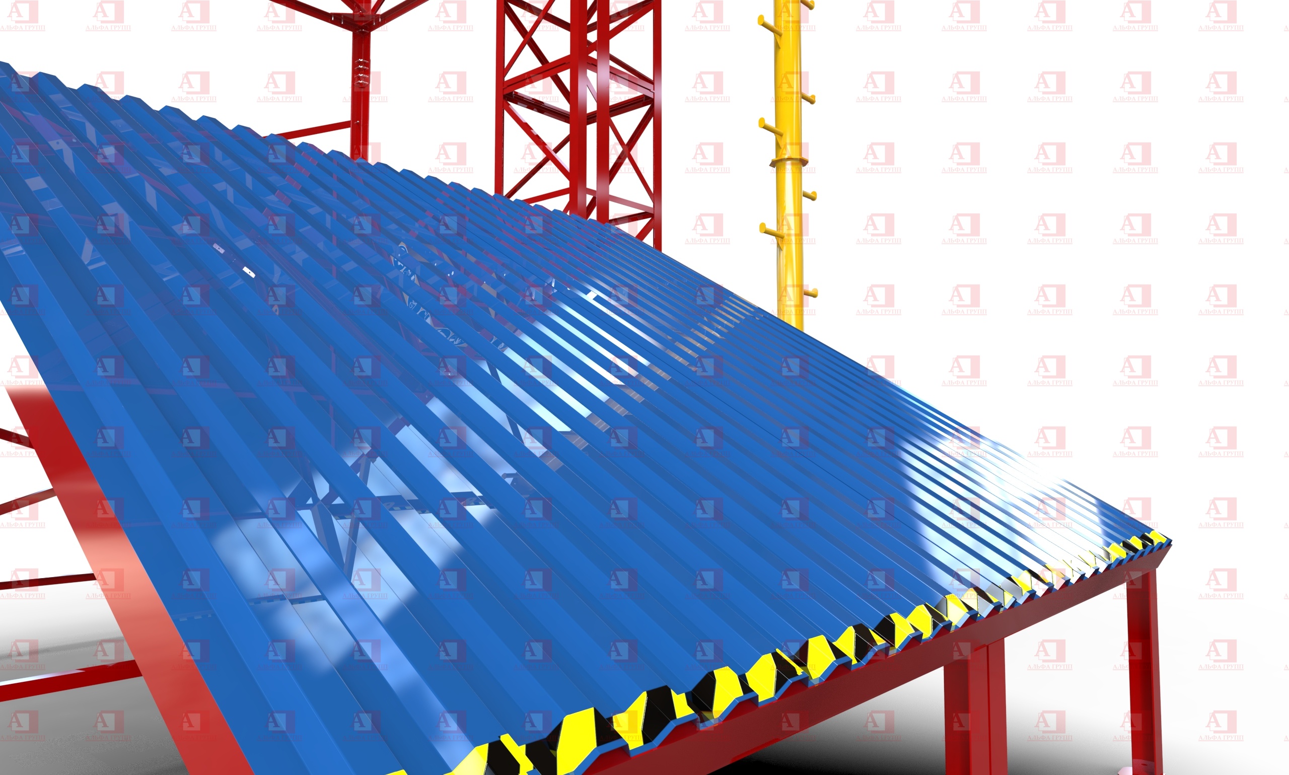 Конструкция полигона – стальная, состоящая из сварных модулей, каждый элемент проходит сложную пескоструйную обработку, а затем покрывается полимерным покрытием. Все модули собираются и крепятся на болтовые соединения.