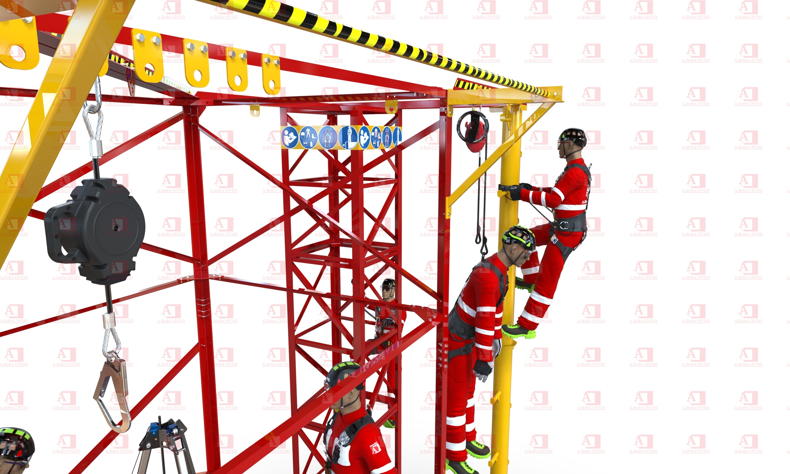 •  Работы при обслуживании путей мостового крана (использование стационарной анкерной линии или двух плечевого соединительно-амортизирующего устройства);