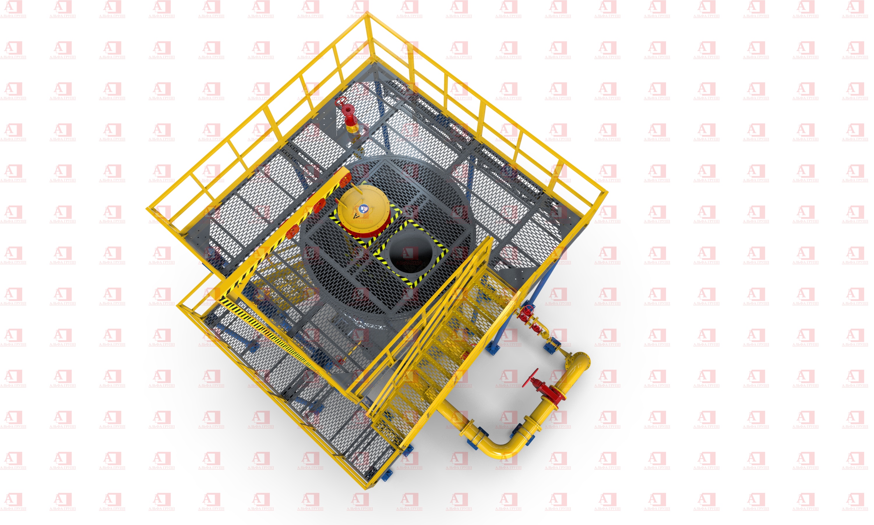 Места интенсивной работы с трипод усилены листами стали и швеллером. Люки и лазы размещены строго симметрично друг под другом для максимального использования высоты комплекса.